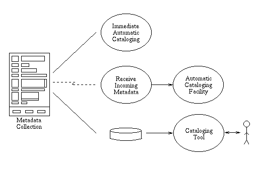 The process of contributing information to the library begins when an agency information manager creates a metadata (catalog) record and identifies the publically available documents associated with the metadata. Metadata includes attribute/value pairs that provide for the capture and analysis of spatial objects and features. Metadata does not provide a sufficient level of abstraction for human access. For this reason, a higher level of representation is needed -a representation that allows users to document and express conceptual properties of data. This requires that the metadata contain high-level conceptual representations such as descriptions and abstracts. This information is captured using the metadata collection facility and used by librarians-to facilitate the construction of access structures that are more appropriate to the task-based needs of information managers and end-users.