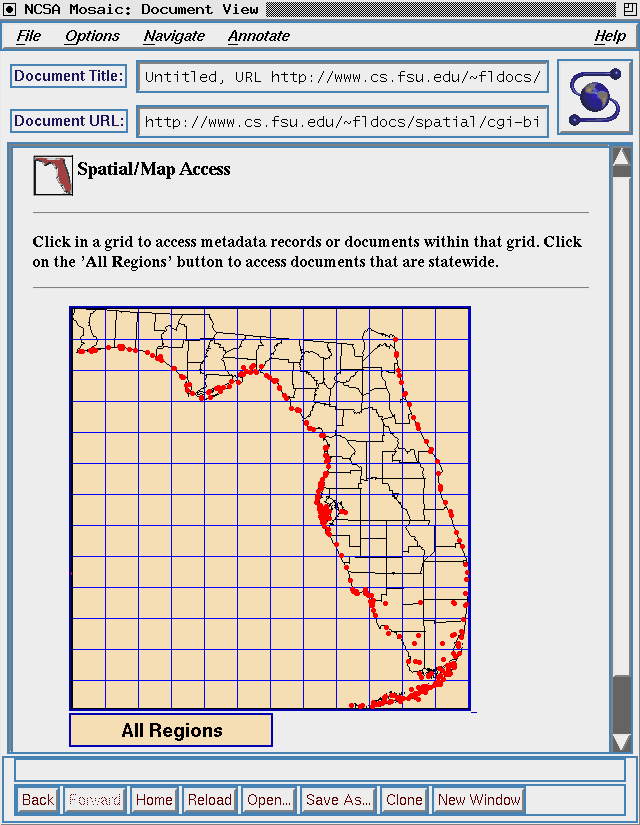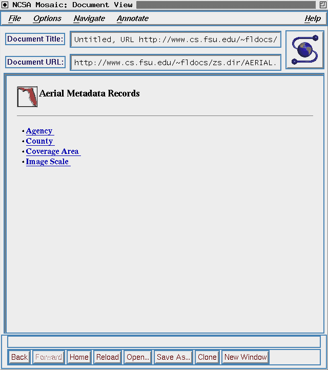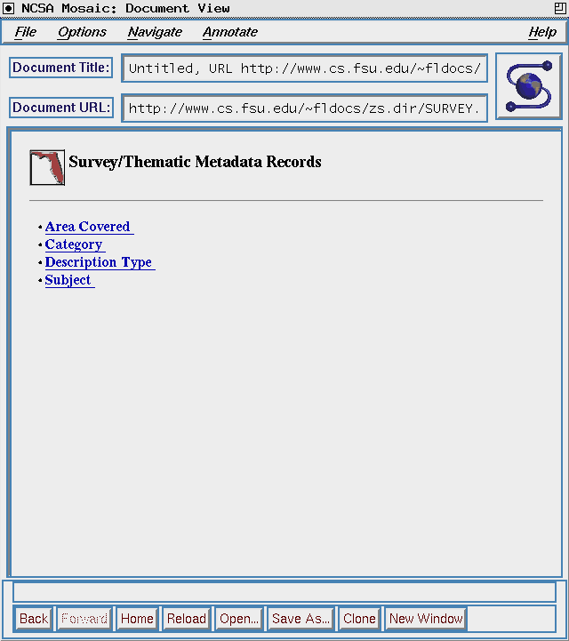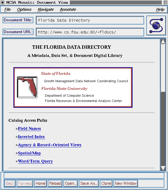 Over the past year, the digital library system described in this paper has supported a collection of the major spatial metadata records for the state of Florida. This collection, called the Florida Data Directory, is a collection of metainformation that is partitioned into three major data types: survey/thematic, aerial photography, and satellite imagery. To further demonstrate the ability of the system to support document and data set collection and access, the Florida Game and Fresh Water Fish commission supplied an environmental habitat report and spatial data sets for all sixty-seven Florida counties. The data sets are linked to the environmental report providing end-users access to all elements used in the production of the report.