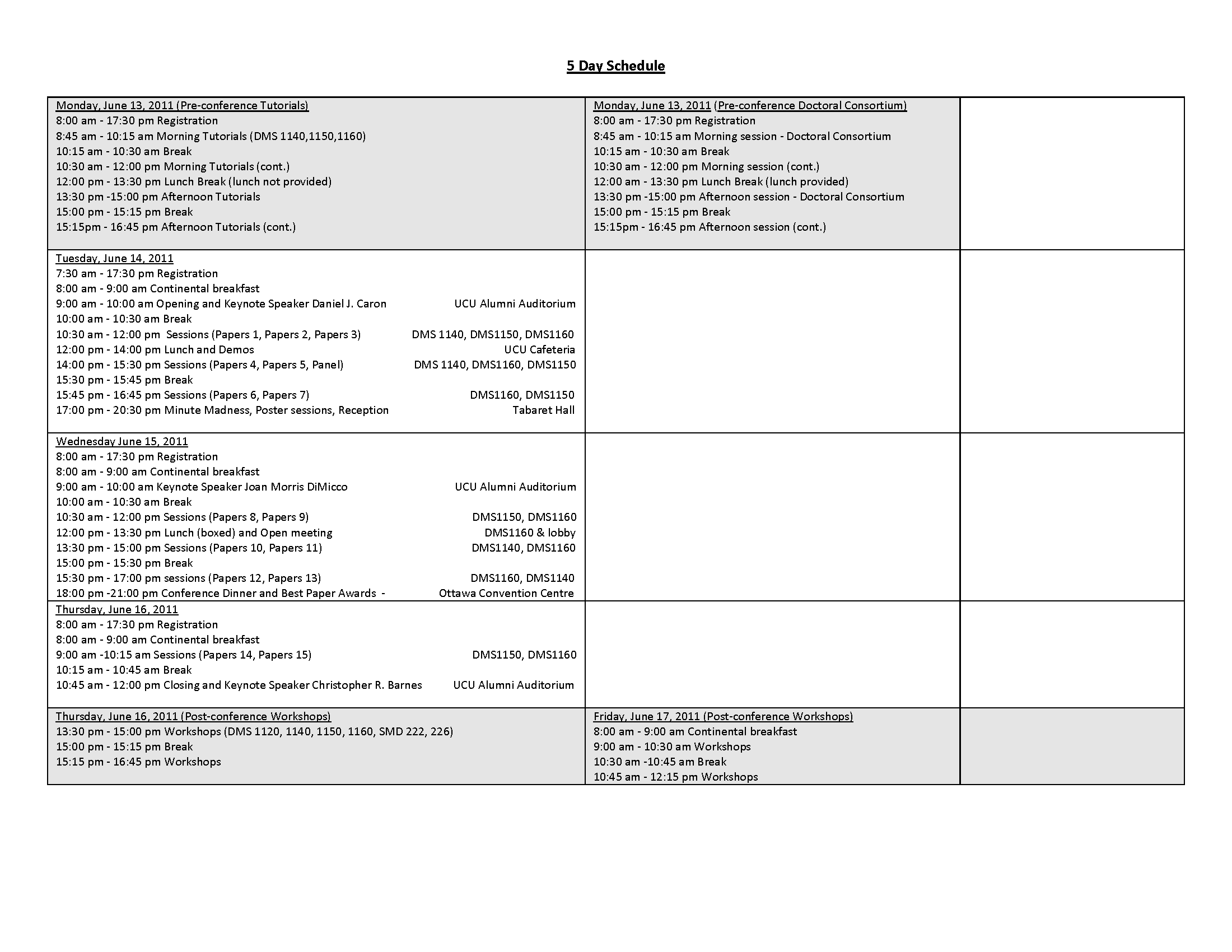 - Workshops (post-conference) Thursday, June 16, 2011 at 13:30 to Friday June 17 at 12:15